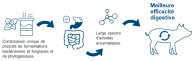 Il s’agit d’une combinaison unique de produits de fermentations bactériennes et fongiques et de phytogéniques, conçue pour améliorer la digestibilité des protéines et des acides aminés chez les porcs, afin de réduire les coûts d’alimentation sans compromettre les performances zootechniques.
